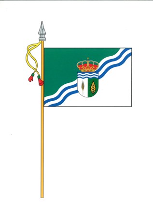 Bandera rectangular, de proporciones 2:3, dividida diagonalmente en dos triángulos por una banda ondada de azul y blanco que hacen referencia al río Tiétar (que va del ángulo inferior del asta al superior del batiente), siendo verde junto al asta y blanco en el batiente. Con el escudo municipal en el centro.
